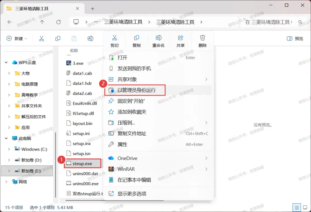4.鼠标左键选中[steup.exe],再右键选择[以管理员身份运行]