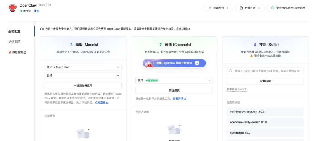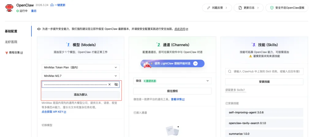 点击配置按钮,就来到OpenClaw的配置页面。