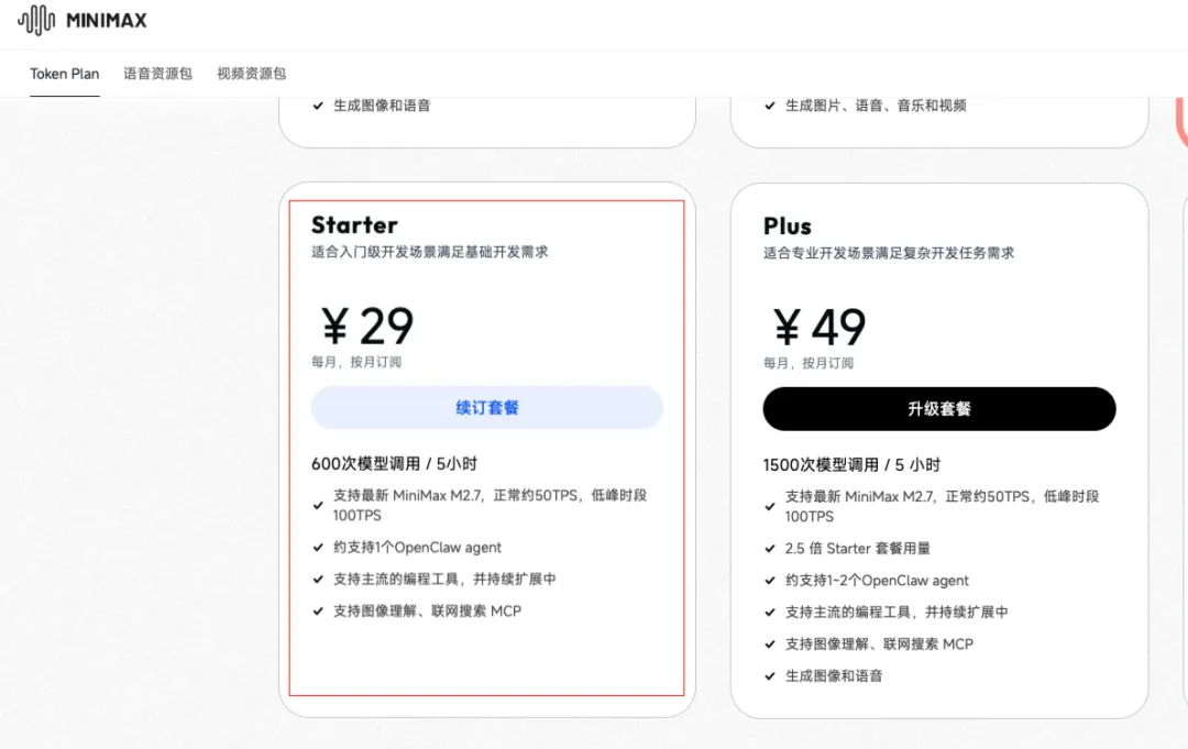 我选择的是MiniMax的Token Plan。