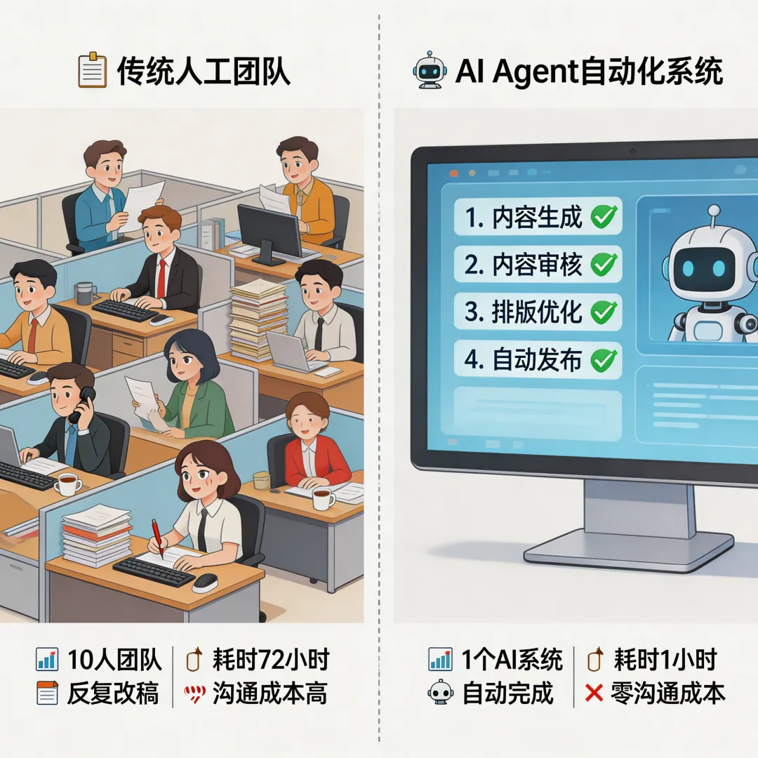 对比10人内容团队年成本120万,Agent方案的成本几乎可以忽略不计。