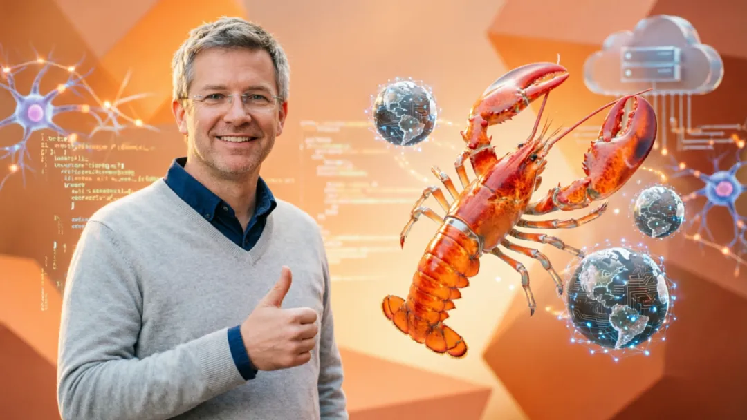▲ ▲ OpenClaw创始人Peter Steinberger点赞有道龙虾,全球AI开发者合作场景,温暖科技风,橙色调