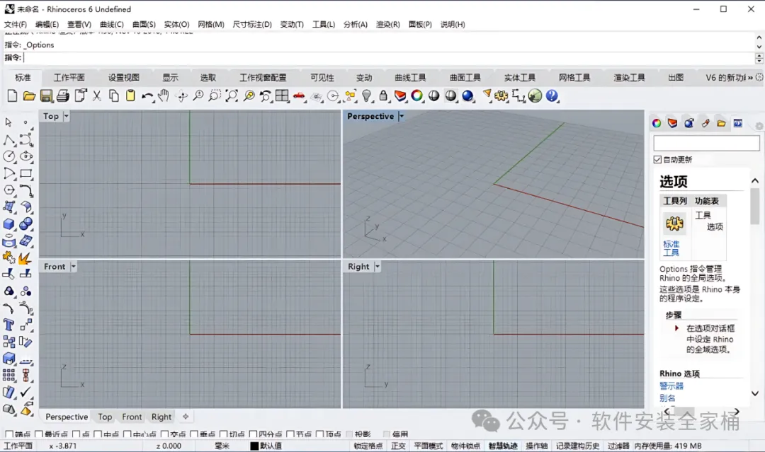 犀牛是一款非常专业且功能强大的三维建模软件,提供了一系列的实用性的功能,涵盖了创建、编辑、分析、提供、渲染、动画与转换 NURBS线条、曲面、实体与多边形网格等功能,该软件支持与几百个不同的 CAD、CAM、CAE、渲染器CAM、工程、分析、着色、动画以及插画软件相互兼容。