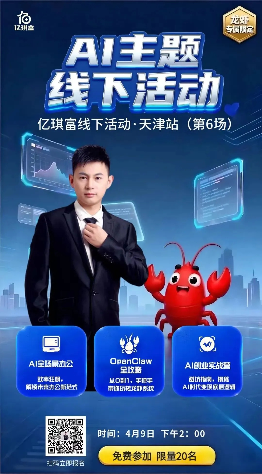作为 AI 办公教育领域的先行者,亿琪富始终致力于把前沿 AI 技术转化为人人可学、可用的实战技能。本次重庆站 OpenClaw 小龙虾线下交流会,是亿琪富深耕区域市场、推动 AI 技术下沉的重要一步,也是对 “AI + 行业应用” 模式的又一次成功实践。