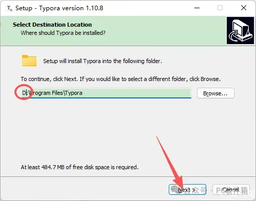 5.修改路径地址中的第一个字符C可更改安装位置(如:把C改为D软件将安装到D盘),点击【Next】。