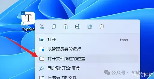 12.鼠标右击桌面【Typora】图标选择【打开文件所在的位置】。