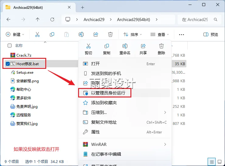 12.返回安装包;右键【Host修改.bat】选择【以管理员身份运行】