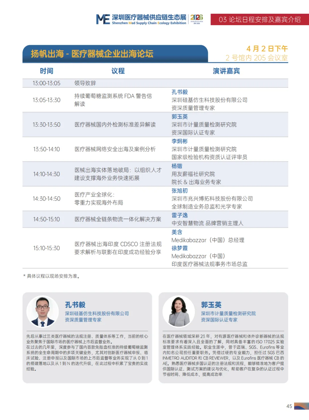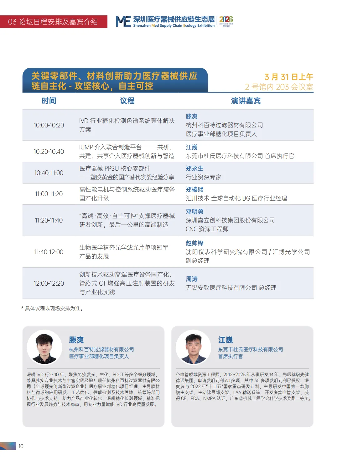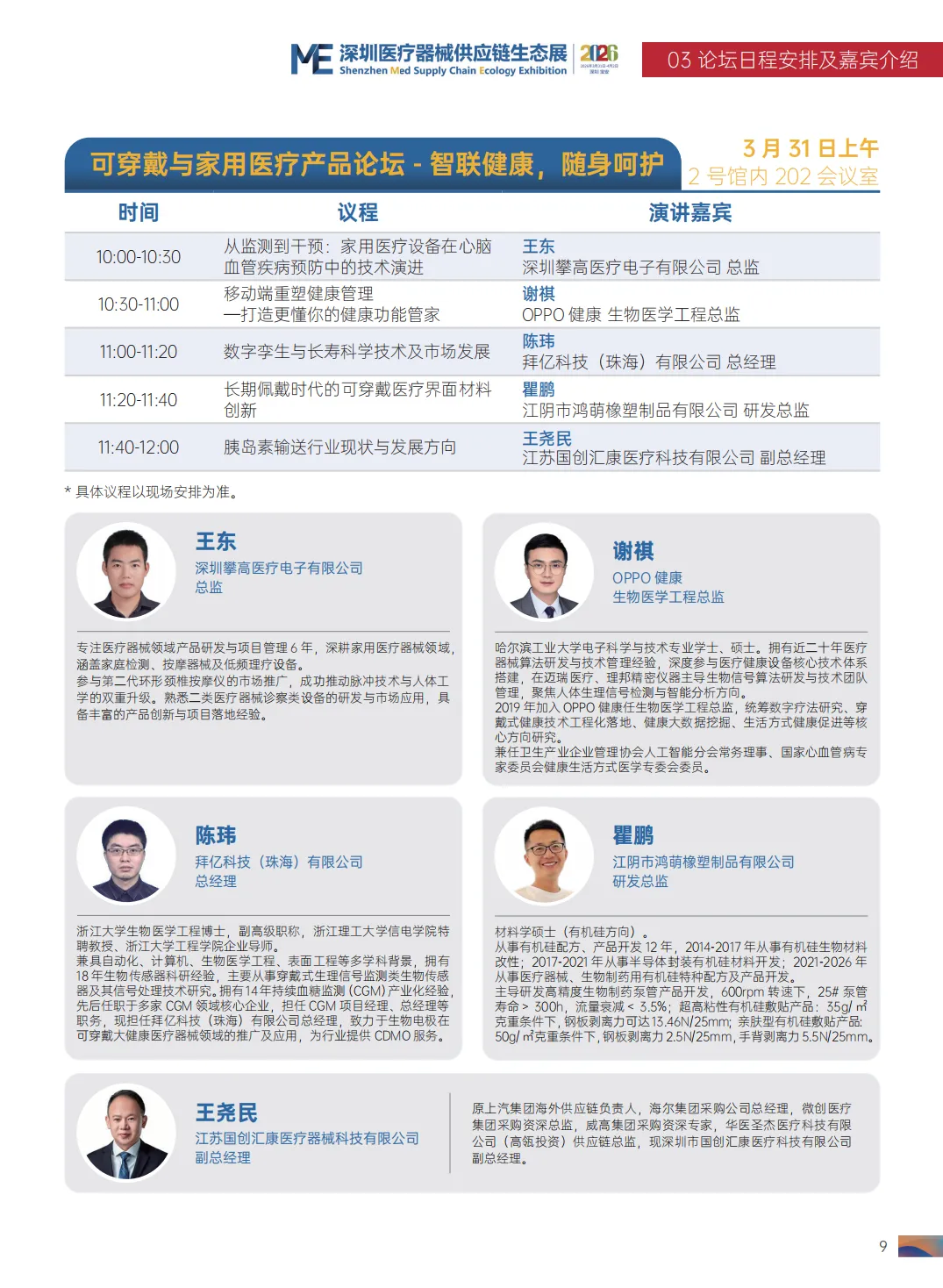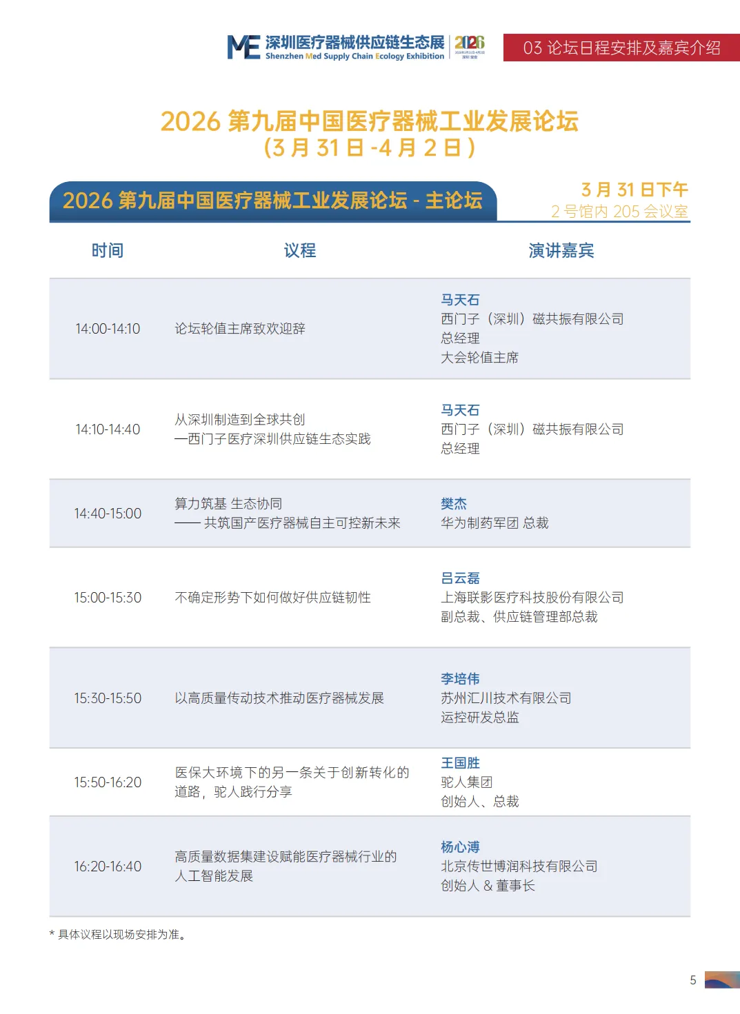 2026 第九届中国医疗器械工业发展论坛清单
