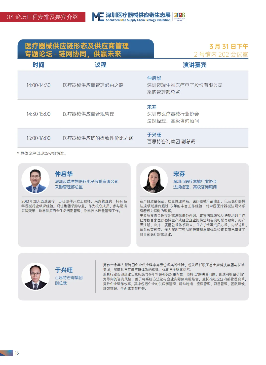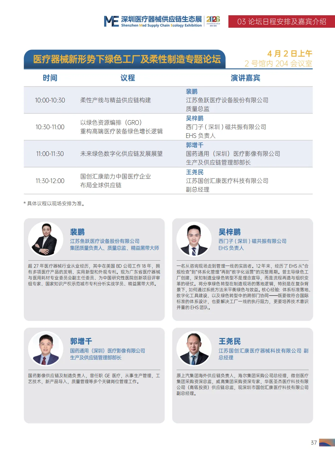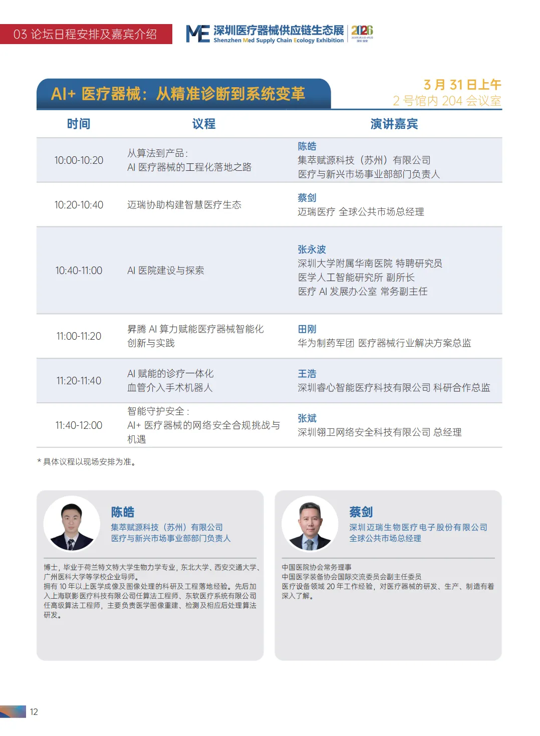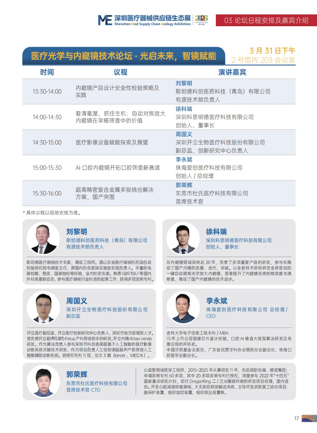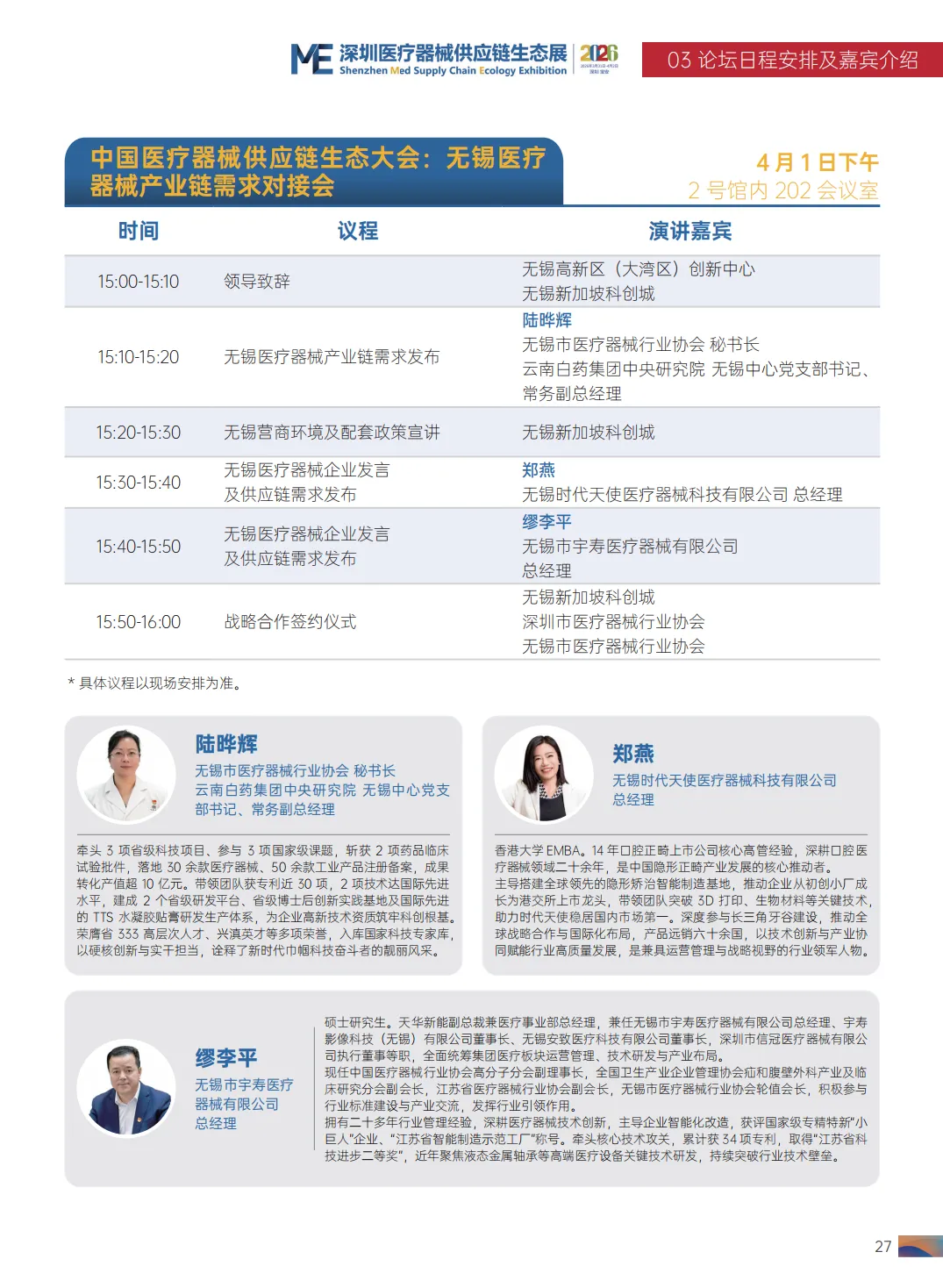 2026 第九届中国医疗器械工业发展论坛清单