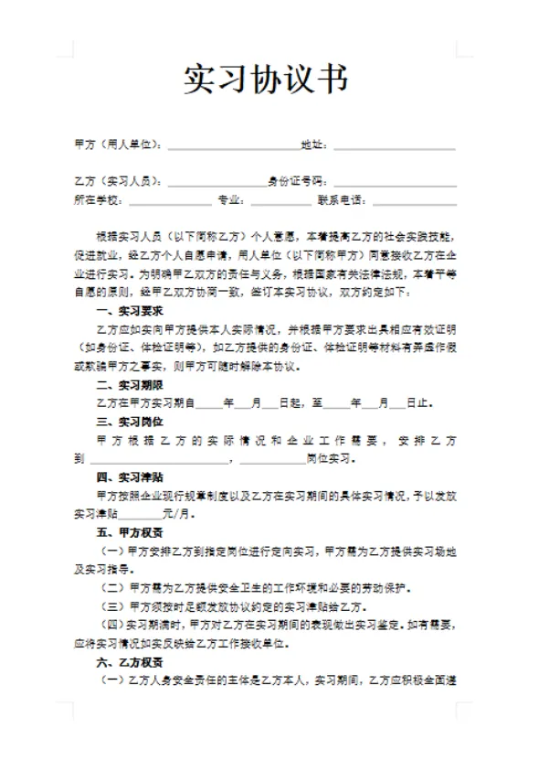 最近很多同学在找2026年新版的大学生实习协议书模板,特别是需要word电子版可编辑的格式。这份资料刚好能满足大家的需求,下载后可以直接使用。