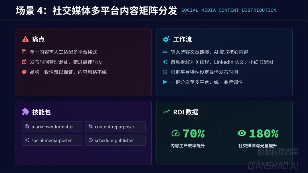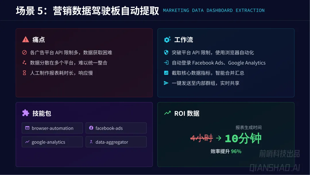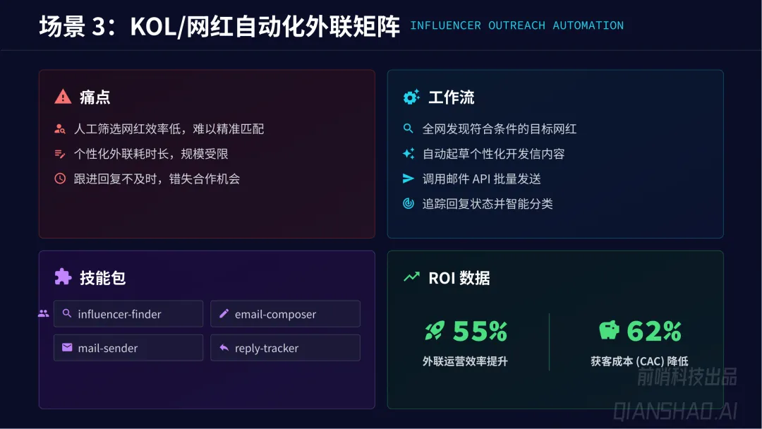 规模化三步走:第一步只读操作(低风险信息聚合,建立信任);第二步带断点的单一闭环(单一系统半自动化,人工确认防线);第三步多智能体深度重构(专业化 Agent 团队并行处理复杂任务,实现 10 倍效率提升)。