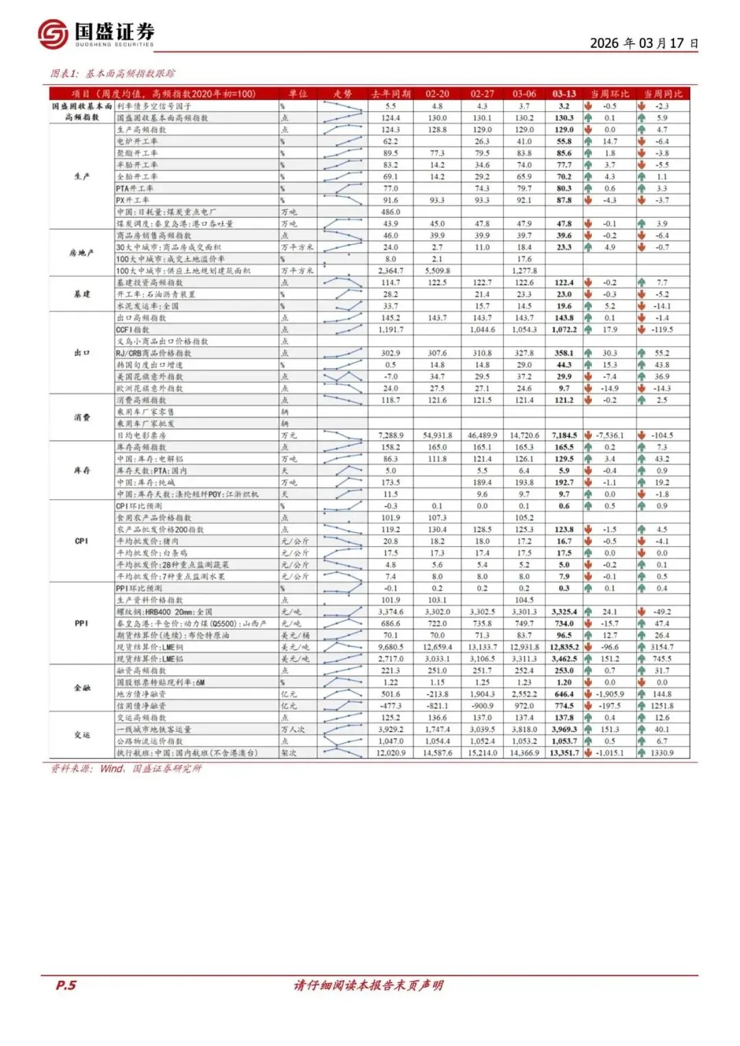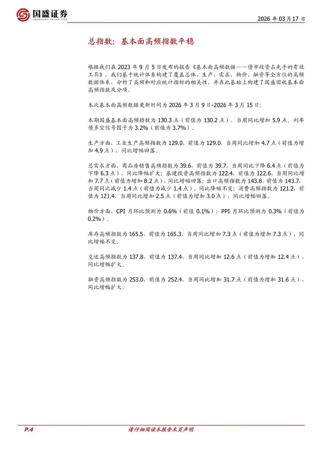 本次基本面高频数据更新时间为2026年3月9日-2026年3月15日:
