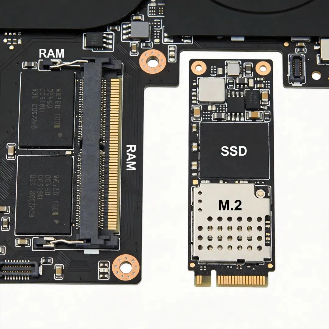 拆开后盖,观察硬盘位是否有2.5英寸SATA接口 观察主板是否有M.2插槽(通常标有"SSD"或"M.2")