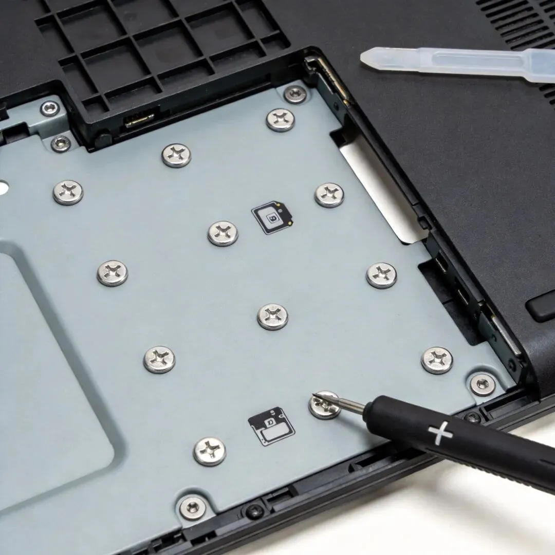 XPS系列后盖拆解较复杂,需要专用工具 部分Inspiron系列有隐藏螺丝(在脚垫下) Latitude系列通常支持双硬盘配置