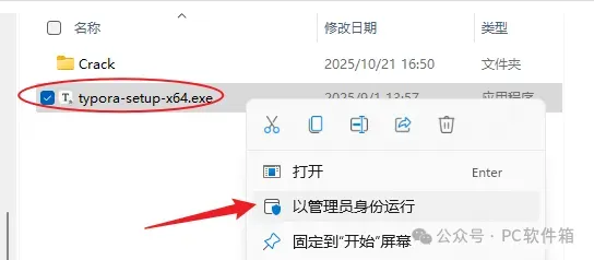 3.右键以管理员身份运行【typora-setup-x64.exe】安装程序。