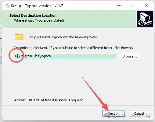 5.修改路径地址中的第一个字符C可更改安装位置(如:把C改为D软件将安装到D盘,安装路径不要出现中文),点击【Next】。
