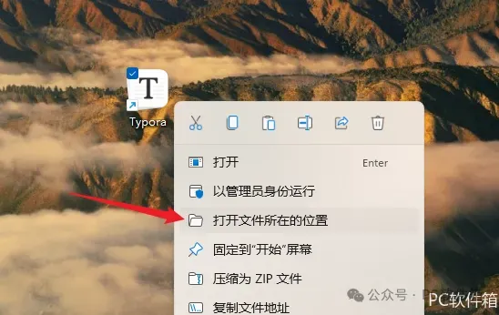 12.鼠标右击桌面【Typora】图标选择【打开文件所在的位置】。