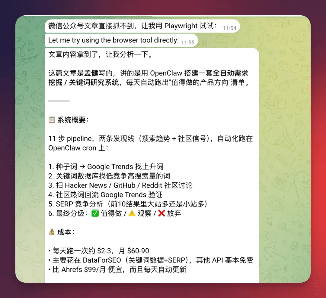 原文在这里:别再瞎找需求了:我用 OpenClaw 搭了一套 11 步全自动挖掘系统