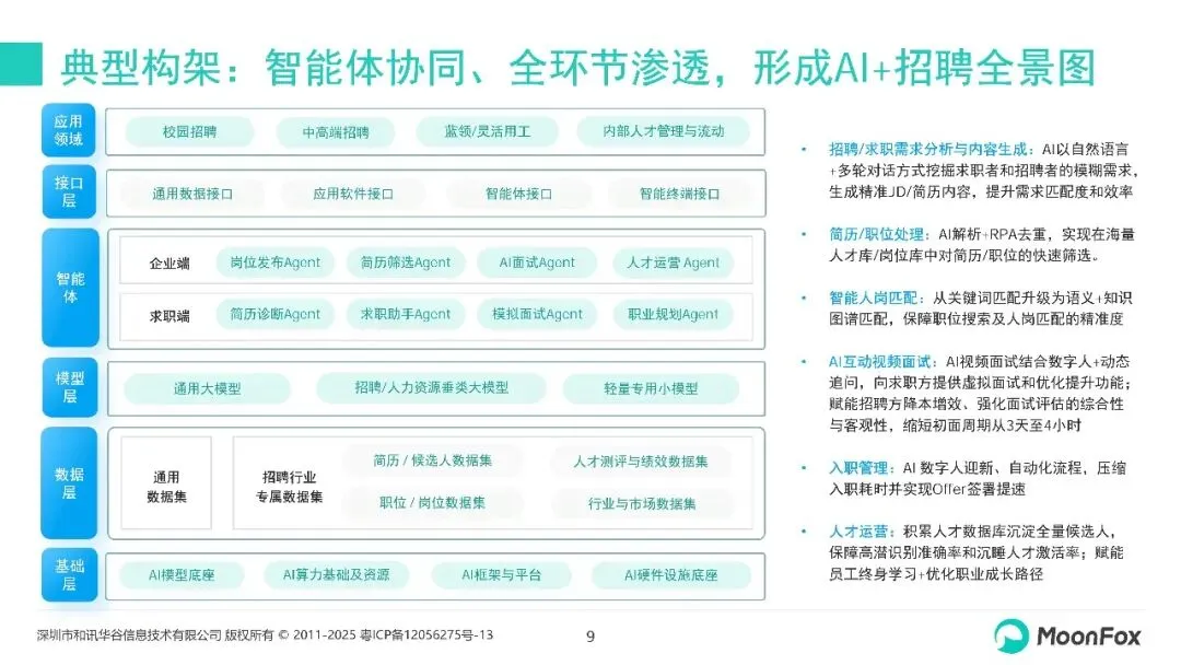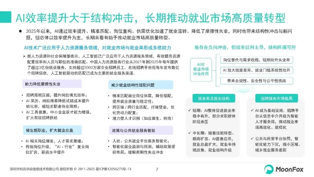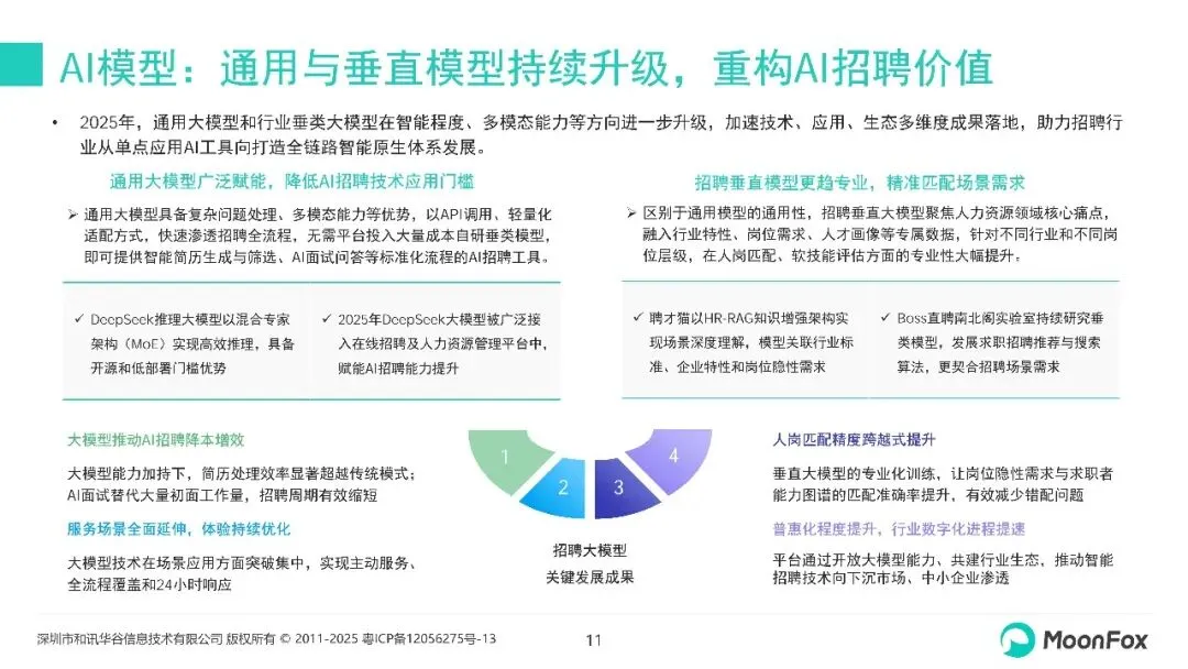 本报告主要聚焦在线招聘行业的AI化进程,分析政策、技术、产业升级等环境变化,重点关注2025年AI+在线招聘的发展动态,结合场景应用、厂商等维度的分析洞察新趋势。