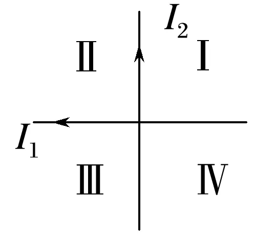 4.两根非常靠近、互相垂直并互相绝缘的长直导线,当通以如图所示方向的电流时,两电流所产生的磁场在导线所在平面内的哪个区域内方向是一致且向里的( )