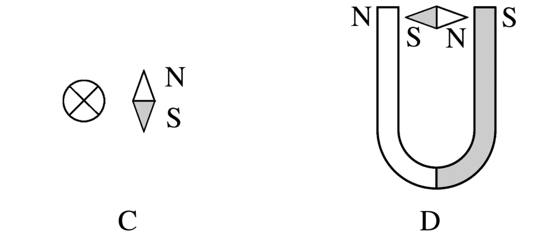 6.(2023·广东广雅中学高二期末)如图所示,当开关S闭合后,小磁针在电流的磁场中的指向正确的是( )