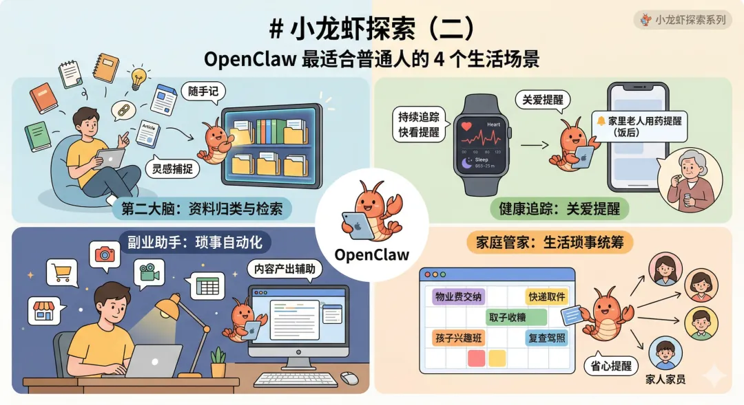 OpenClaw 在生活里最有用的,不是“陪你聊天解闷”,而是做一个一直在线、不会嫌烦、还能持续跟进的助手。