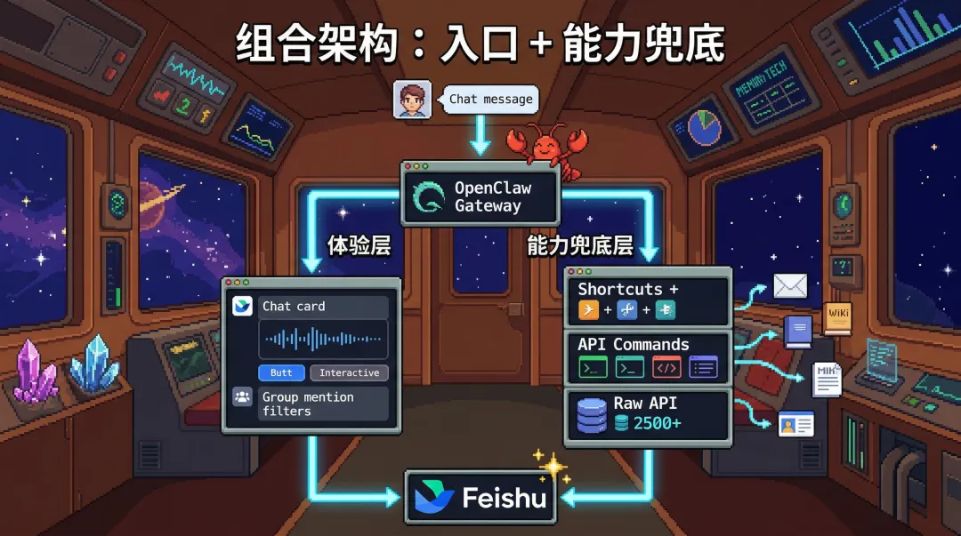 推荐架构:OpenClaw做入口,飞书CLI做工具。