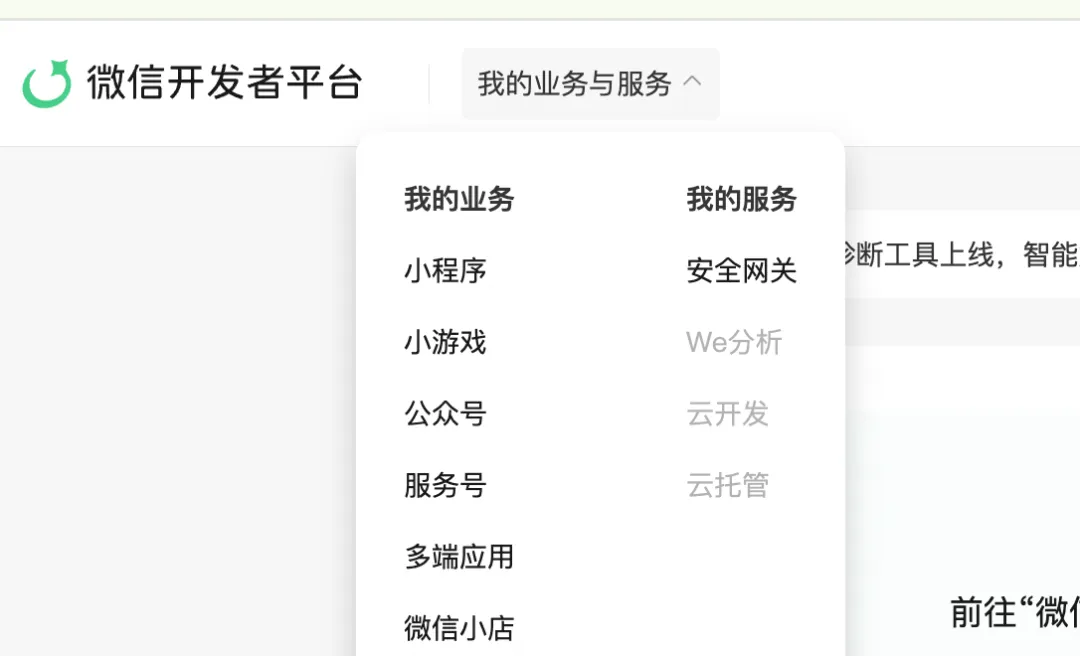 https://developers.weixin.qq.com/platform 打开微信公众号开发者平台在我的服务与业务中,选择公众号