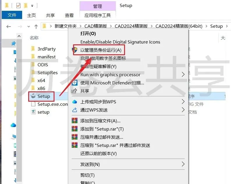 3.鼠标右击→Setup,选择→以管理员身份运行