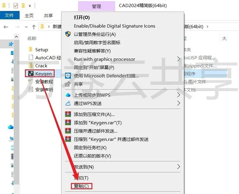 10.鼠标右击→解压后的Keygen,选择→复制