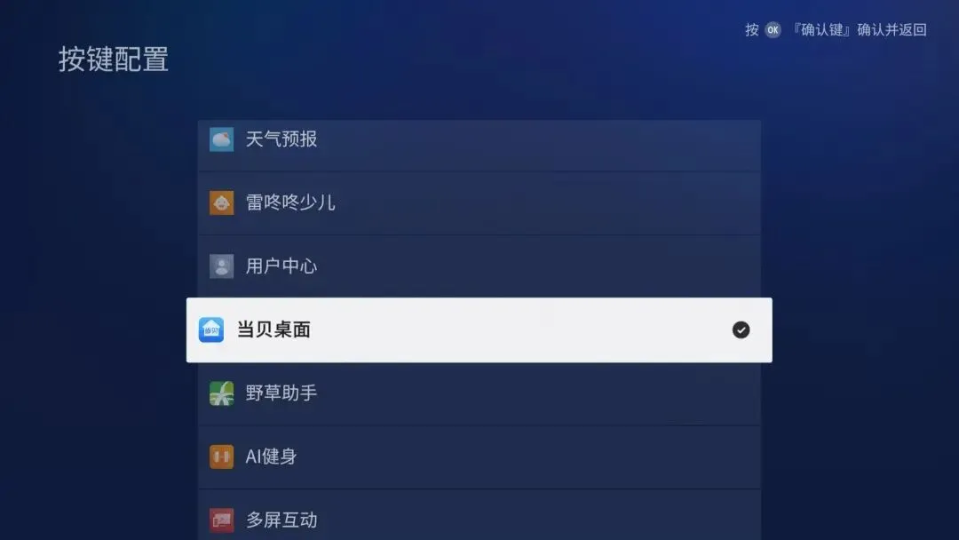 ◦ 简易版:长按电视遥控器主页键,弹出桌面选择窗口,选中刚安装的第三方桌面,点击「始终」,后续按主页键直接切换;