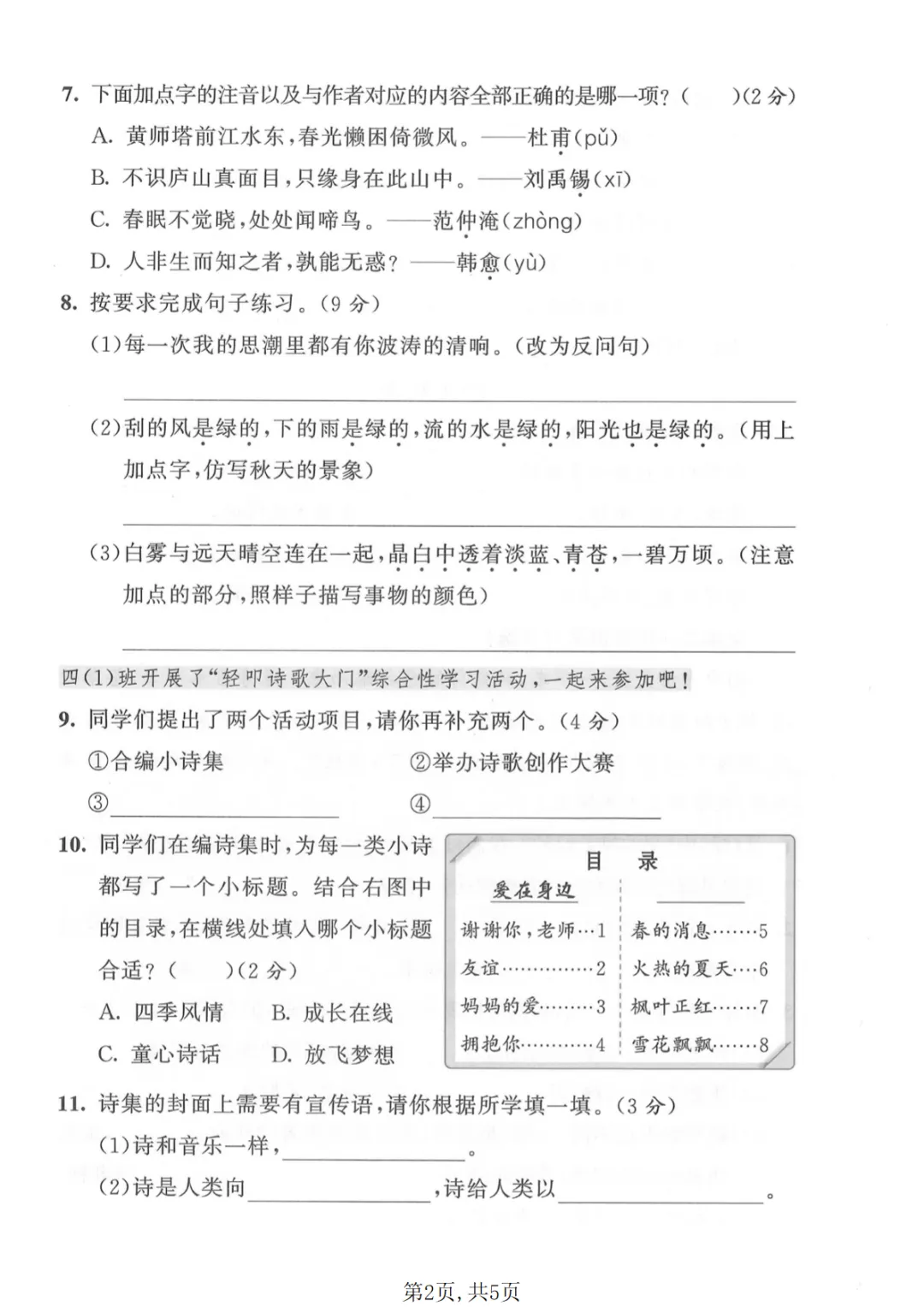 四年级(下)语文 第三单元拔尖测试卷