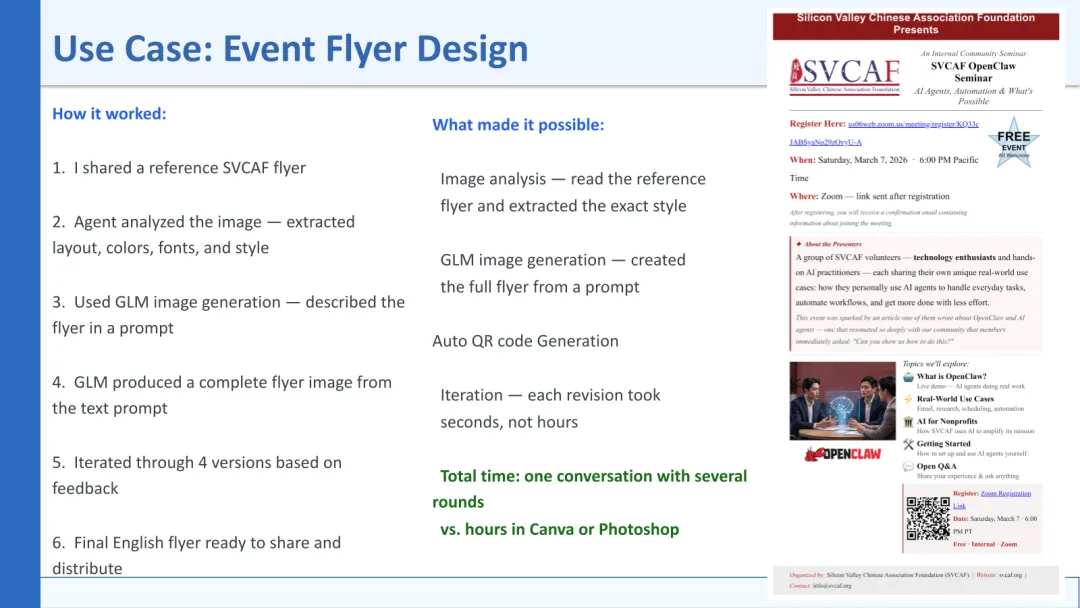 2026年3月7日,硅谷华人基金会(SVCAF)举办了首届 OpenClaw 研讨会——一场面向理事会成员、志愿者和社区成员的内部活动,探讨 AI 代理如何改变我们组织的运营方式。