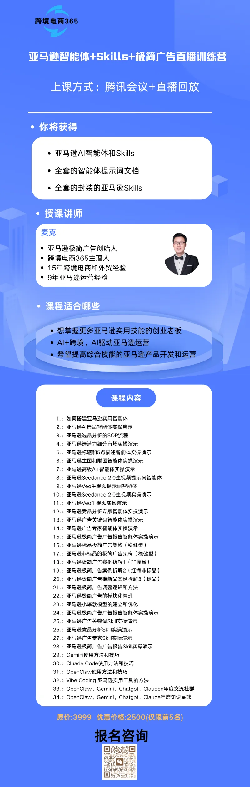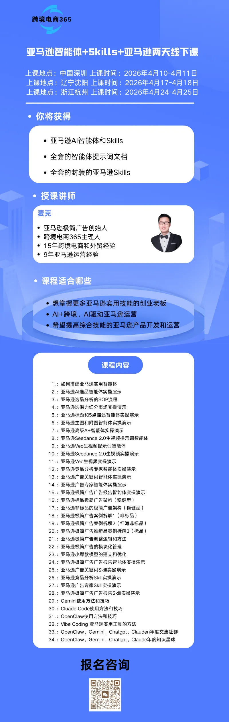 智能体+Skills+亚马逊线上直播训练营课程大纲,