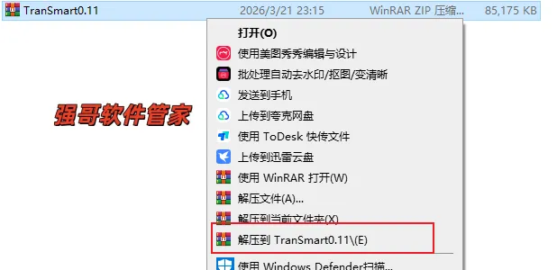 2.创建桌面快捷方式:①鼠标右击【TranSmart】②选择【发送到】③点击【桌面快捷方式】