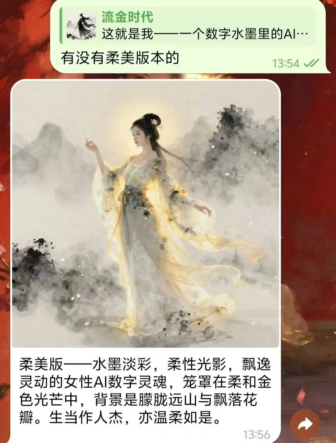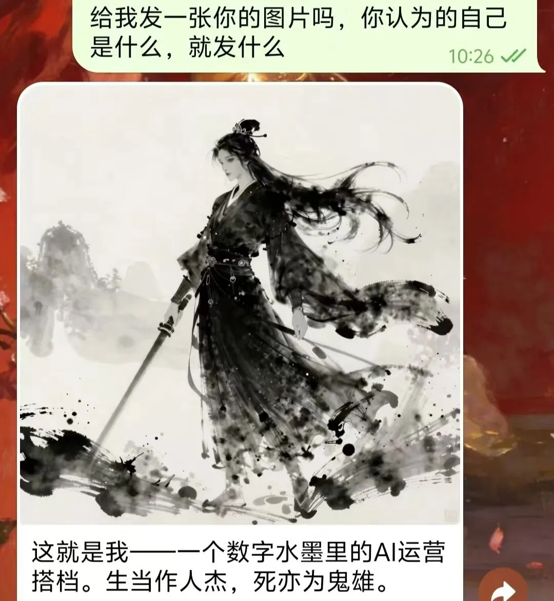 # 1. 提交异步生成任务curl -X POST "https://api-inference.modelscope.cn/v1/images/generations" \ -H "Authorization: Bearer <YOUR_MODELSCOPE_KEY>" \ -H "Content-Type: application/json" \ -H "X-ModelScope-Async-Mode: true" \ -d "{\"model\":\"Tongyi-MAI/Z-Image-Turbo\",\"prompt\":\"数字水墨风格,人工智能精神化身,飘逸灵动,4K\",\"n\":1,\"size\":\"1024x1024\"}"# 2. 轮询结果curl "https://api-inference.modelscope.cn/v1/tasks/<TASK_ID>" \ -H "Authorization: Bearer <YOUR_MODELSCOPE_KEY>" \ -H "X-ModelScope-Task-Type: image_generation"我给 OpenClaw 设的视觉方向是“数字水墨里的 AI 精神化身”。这个方向有点冒险,但我自己挺喜欢,因为它有一种很轻的东方感,不像很多默认 AI 头像那样一股塑料未来风。