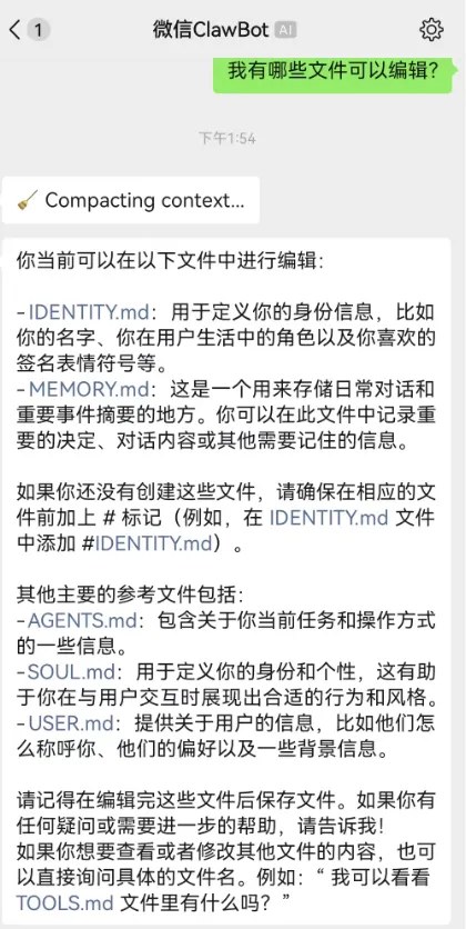 4.绑定成功后,OpenClaw 会出现在微信聊天列表,直接发消息即可交(你就可以对他下达命令了啊)