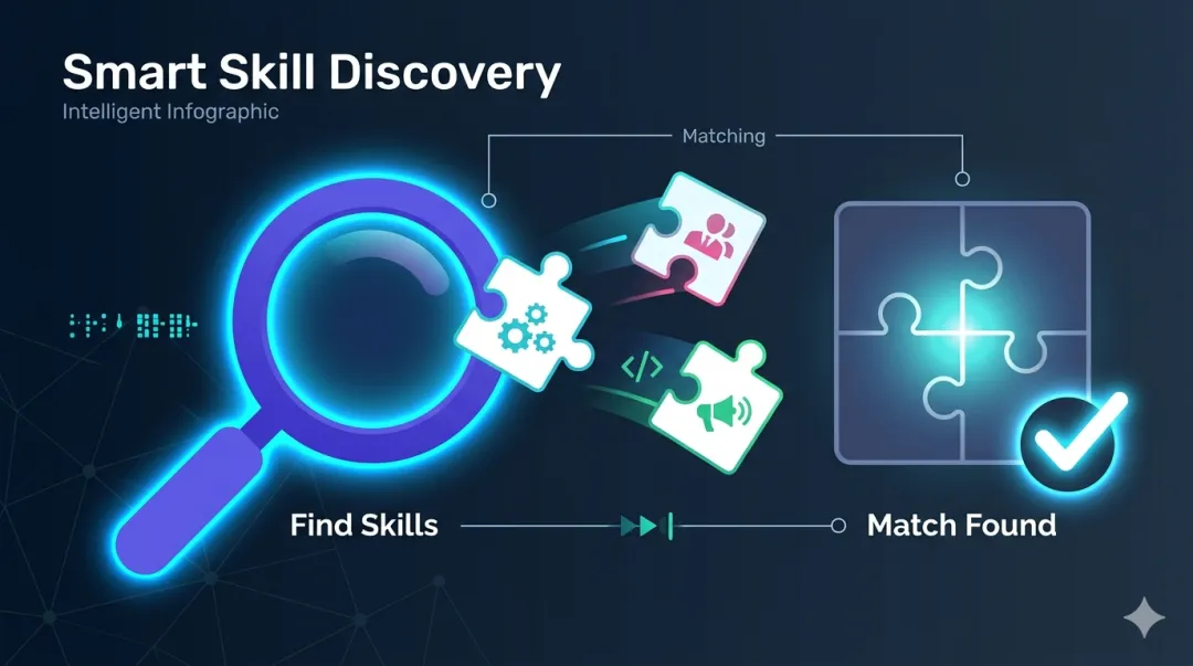 适合人群: 新手用户——不需要知道有什么技能,只要描述需求,AI帮你找到。