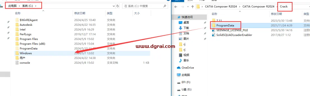 2、将安装包Crack文件夹里面的ProgramData复制到电脑C盘根目录下