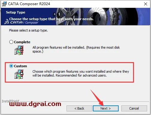 8、选择安装类型,选择Custom,然后点击Next进入下一步