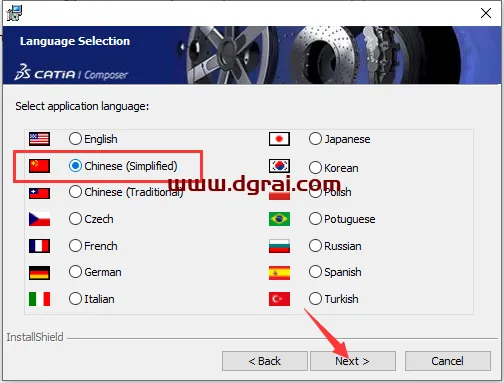 10、选择安装语言,勾选Chinese(Simplified),然后点击Next进入下一步