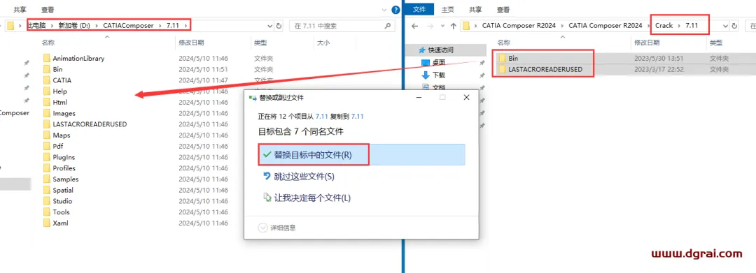 17、复制Crack\7.11中的破解文件到刚才后退的软件安装目录下的7.11文件夹下替换目标