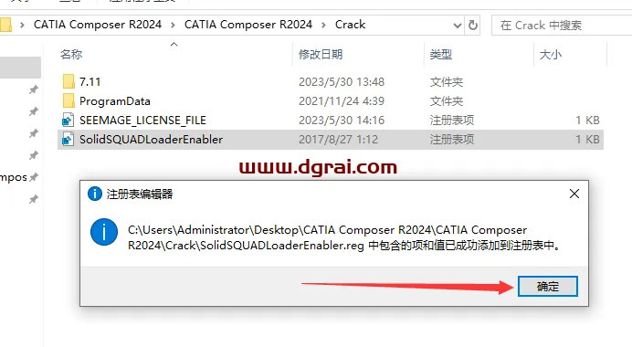 19、SolidSQUADLoaderEnabler,reg 中包含的项和值已成功添加到注册表中,点击确定