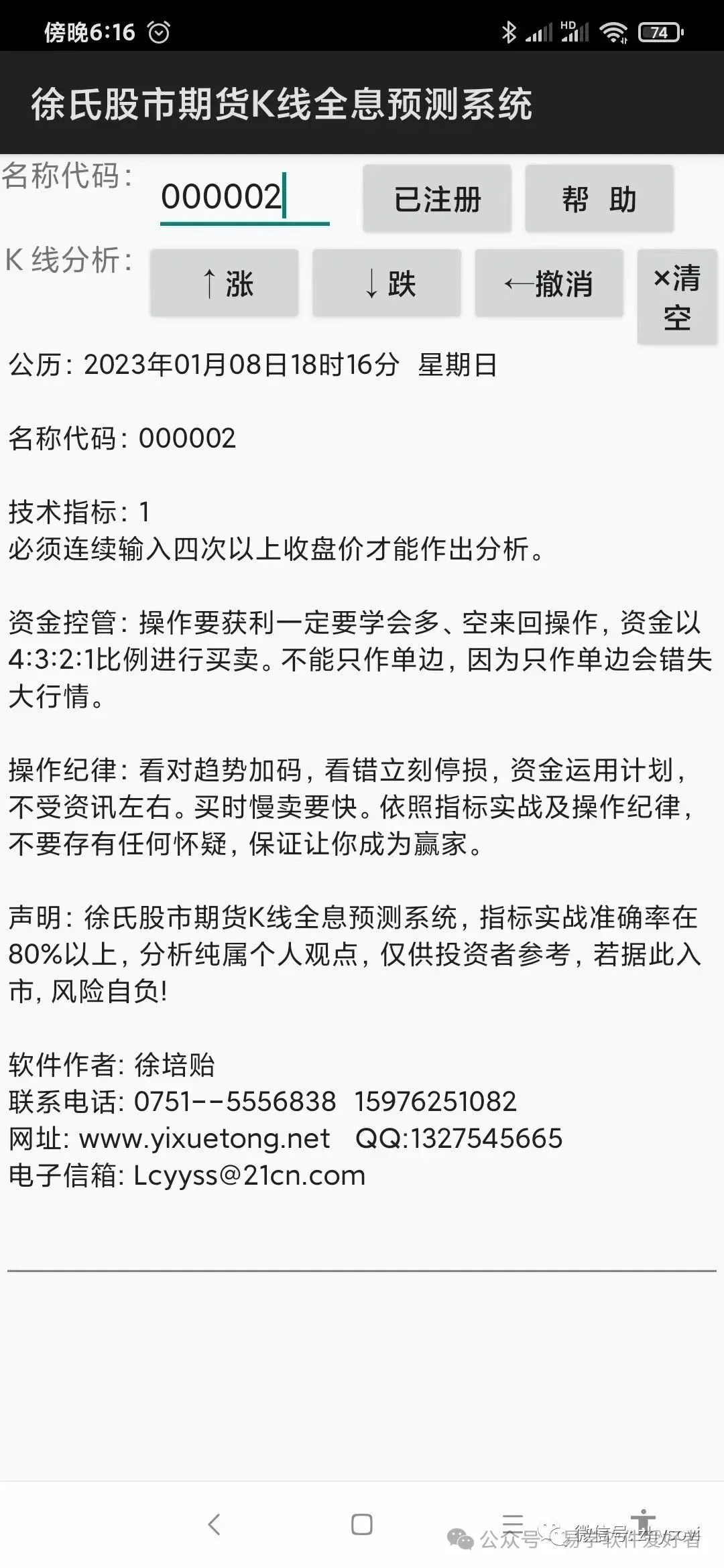 手机版徐氏股市期货K线全息预测系统,卖50元,需要的联系我!