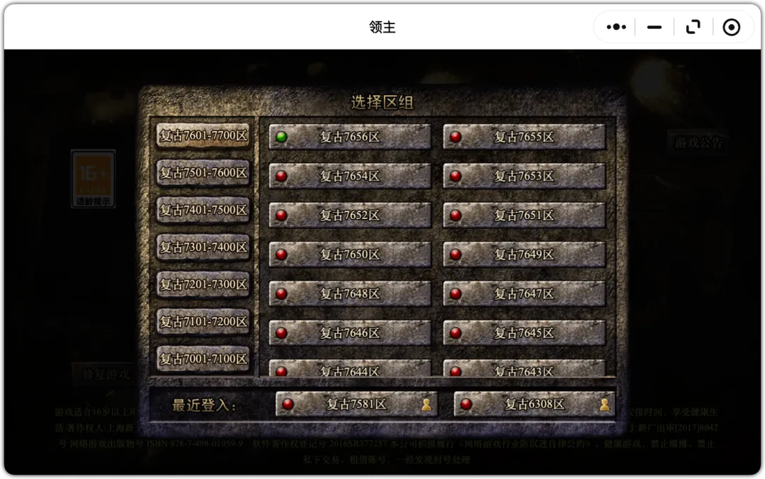 (昨日复古7646区,今日7656区,新开10服)