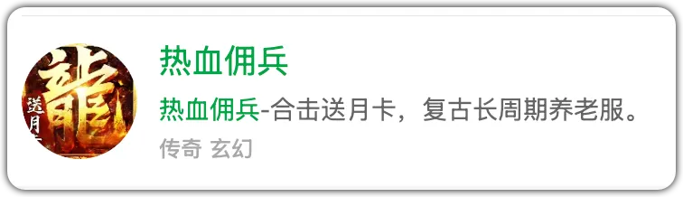 5、《热血佣兵》 小五碎碎念:养老传奇、合击送月卡、复古长周期、生态大服、三职业打金、千人同屏、物价稳定、自由交易、可搬。