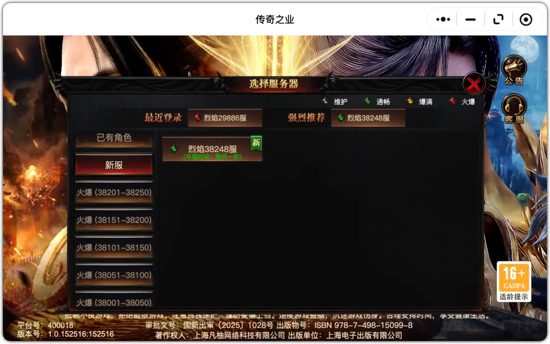 (昨日38039服,今日38248服,今日新开209服🔥)