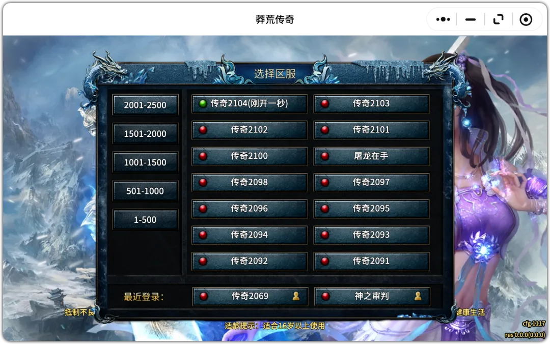 (昨日2102区,今日2104区,新开2服。)
