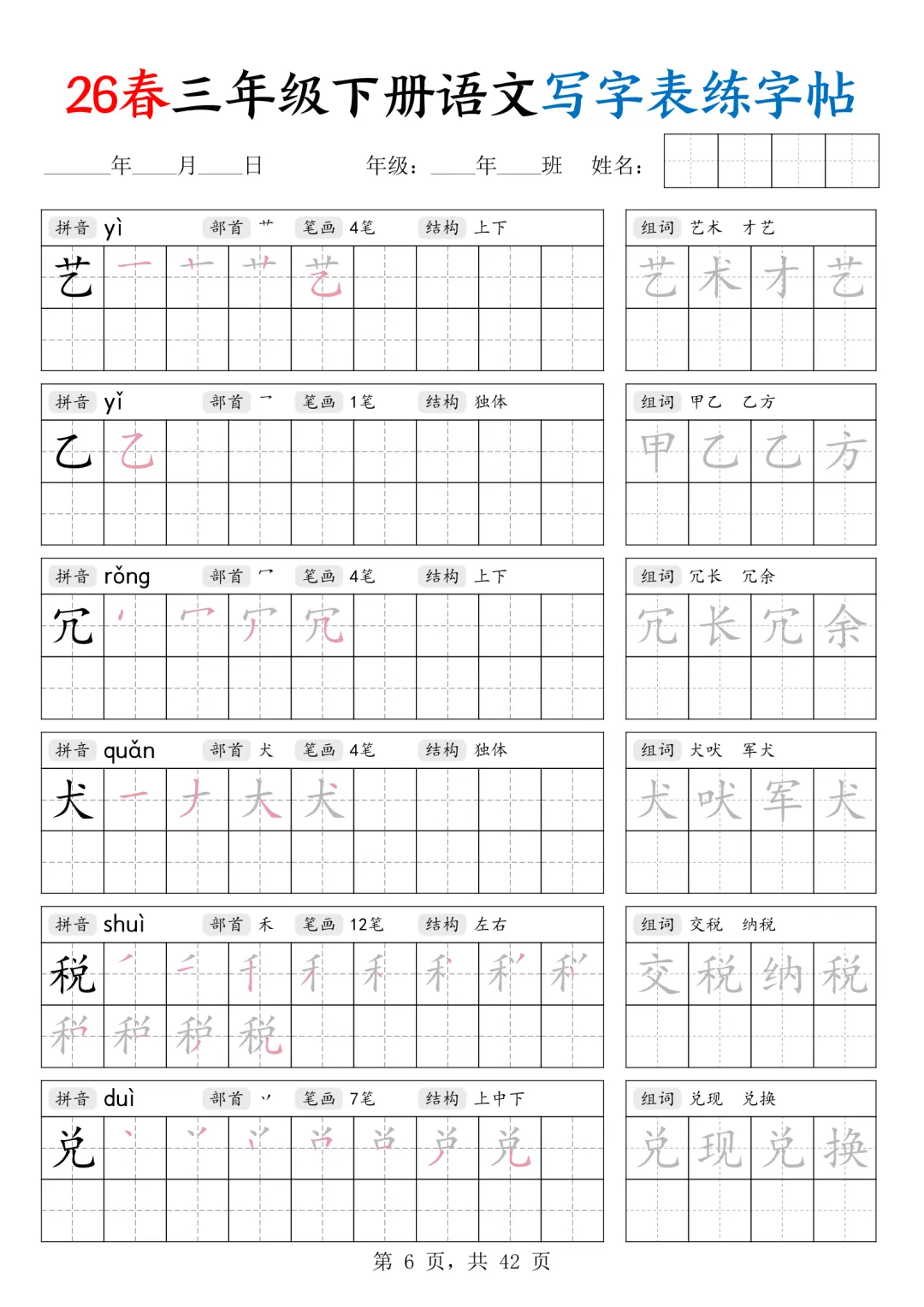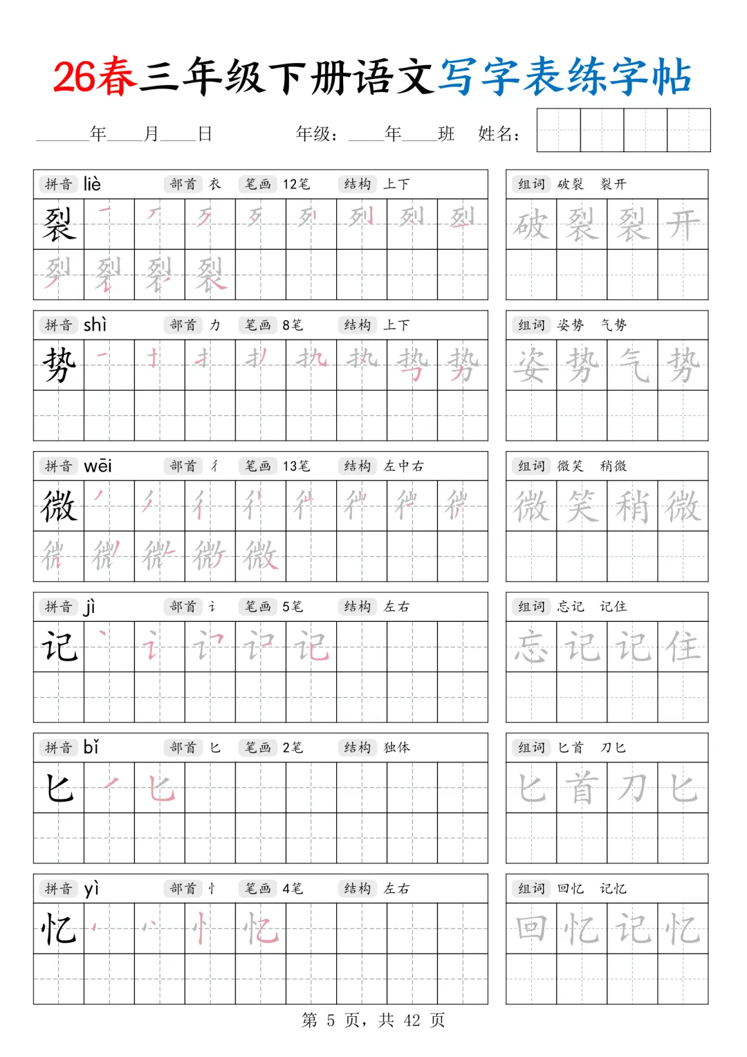 26春三年级下语文写字表练字帖(高清下载)学拼音工具标题26春三年级下语文写字表练字帖寒假假学习 分享电子版下载打印更多内容网盘下载通过网盘分享的文件:✅26春三下语文写字表练字帖.pdf链接: https://pan.baidu.com/s/1HKzZyJYtqG94cPFATsAa0A 提取码: hypy
