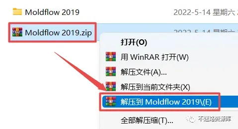 1.选中下载的压缩包,然后鼠标右键选择解压到“Moldflow 2019”(没有解压选项点这里)