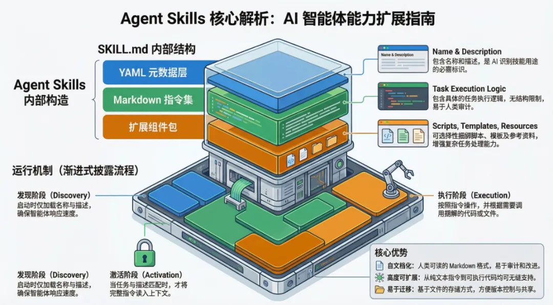 今天要聊的Agent Skills,正是这样一种轻量级、开放的能力扩展格式。它正在悄悄改变AI智能体的能力边界。